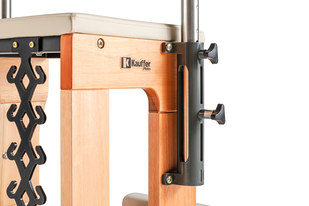Con casquillos autolubricantes situados en los laterales de los pedales, el bloqueo se realiza rápidamente mediante una barra de madera maciza.